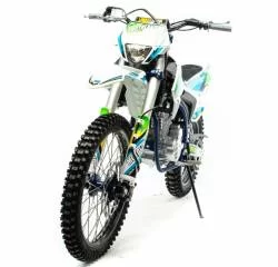 Подходит для новичков и любителей мотокросса. Идеален для бездорожья, его кроссовые шины (110-90) и (80-100) просто созданы для езды по мягкому и среднему грунту. Телескопическая вилка перевернутого типа позволяет легко преодолевать ямы, ухабы и другие неровности. Задняя подвеска маятниковая, с моноамортизатором.