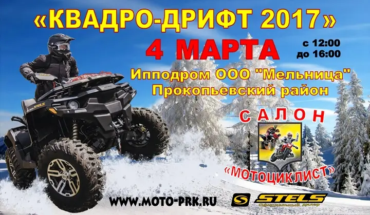 4 марта 2017 года в Кемеровской области на ипподроме ООО «Мельница» пройдут соревнования по зимнему дрифту на квадроциклах.