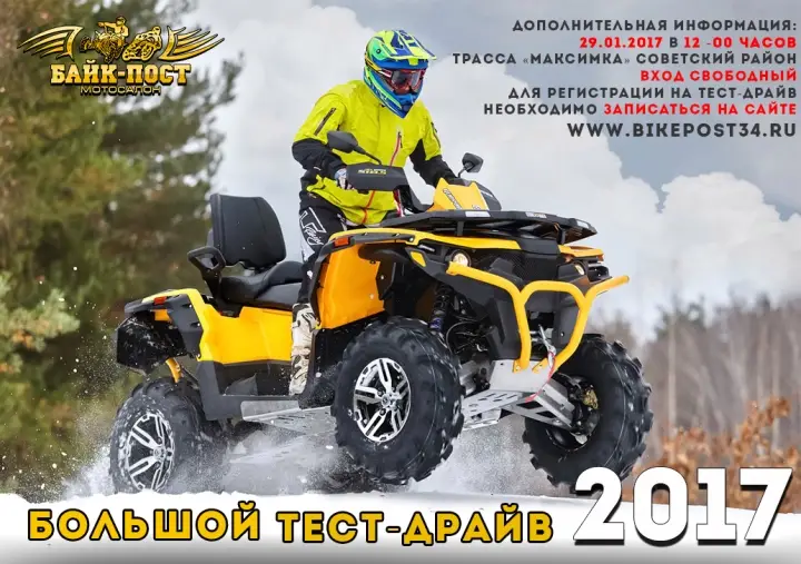 Регистрация на тест-драйв квадроциклов на сайте www.bikepost34.ru